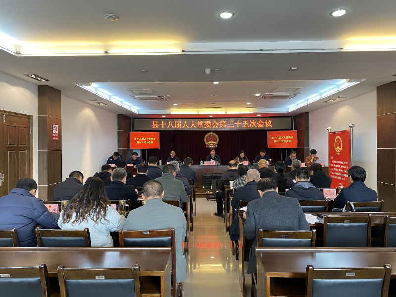 2025年12月18日,县人大常委会主任吴志平主持召开县十八届人大常委会第三十五次会议。县人大常委会副主任郑向阳、方新辉、江勇民出席会议,副县长吴文斌列席会议。