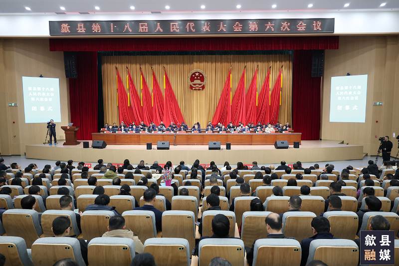 “各位代表、同志们,经过全体代表和与会同志的共同努力,歙县第十八届人民代表大会第六次会议,圆满完成了各项议程,即将闭幕。会议期间,各位代表认真履职尽责,积极建言献策,共商发展大计,展现了饱满的政治热情和强烈的使命担当。会议选举产生了县人民法院院长,票决确定了2026年度10个县级民生实事项目,审议批准了《政府工作报告》和其他各项报告。会议开得很成功,是一次民主团结、凝聚共识、风清气正的大会。”