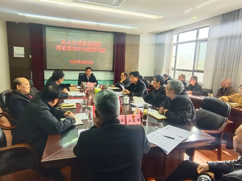 2 月 28 日,县人大常委会党组书记、主任吴志平主持召开常委会党组理论学习中心组学习(扩大)会议。县人大常委会副主任方新辉、江勇民及全体机关干部参加会议。